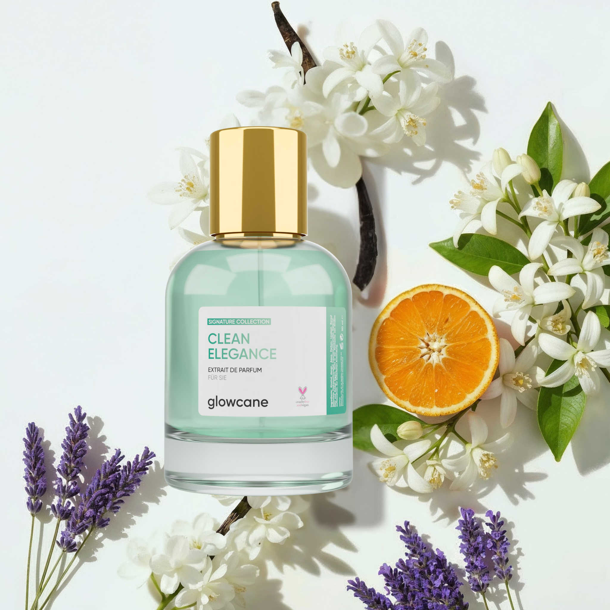 Jeder Tropfen Clean Elegance umhüllt dich mit einer einzigartig-selbstbewussten Frische aus Zitrus-Neroli und Mandarinorange. Sinnlich-florale Herznoten mit Jasmin gehen sanft in einen paradiesischen Akkord aus zarter Vanille und weißem Moschus über.