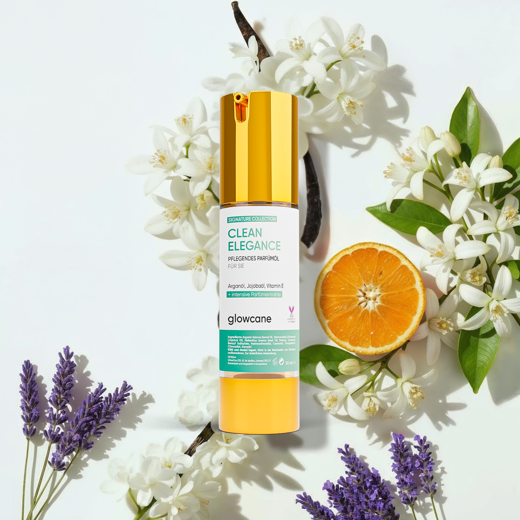 Jeder Tropfen Clean Elegance umhüllt dich mit einer einzigartig-selbstbewussten Frische aus Zitrus-Neroli und Mandarinorange. Sinnlich-florale Herznoten mit Jasmin gehen sanft in einen paradiesischen Akkord aus zarter Vanille und weißem Moschus über.